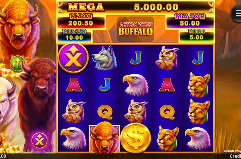 Ride the prairie in Action Ways™ Buffalo, where the innovative Action Ways™ system fuels dynamic feature progression. Jackpot Coins contribute to shared prizes and can trigger a Pick Feature, while Free Spins evolve through multipliers, reel expansions, or streamlined symbols. A modern buffalo slot blending smart mechanics with frontier-scale win potential.