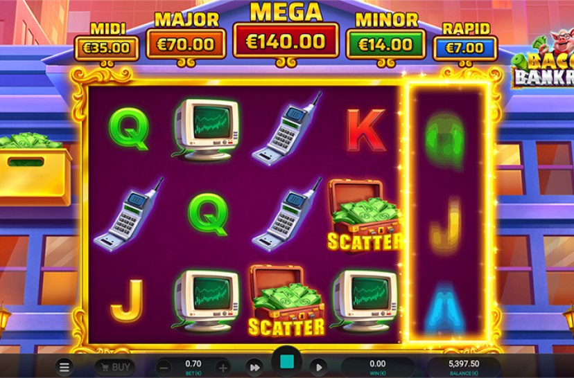 Get ready for sizzling action in Bacon Bankroll, a Wall Street-themed slot with stacked symbols and static jackpots. With win potential over 5,000x, watch your piggy bank grow with each spin as you chase big payouts and enjoy the thrill of the stock market.