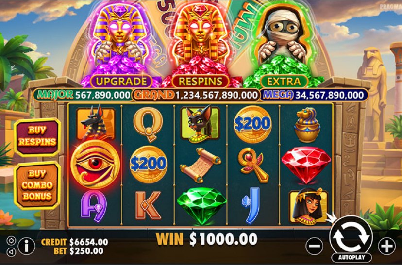 Uncover ancient power in Mummy’s Jewels 1000, where Eye of Ra Collect and Super Collect symbols gather adjacent money values up to 10,000x. Super Collects can also award multipliers up to 100x, amplifying tomb riches in this Egyptian-themed slot packed with mystical mechanics and high win potential.