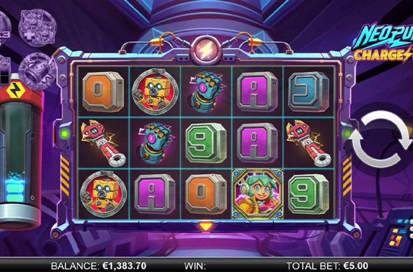Neopunk Charge Up™ brings futuristic slot gameplay powered by ReelPlay’s Charge Up™ mechanic. Collect scatter symbols over time to unlock three unique upgrades, each enhancing gameplay with dynamic features. Electric visuals and progressive mechanics create an engaging experience with evolving win potential.