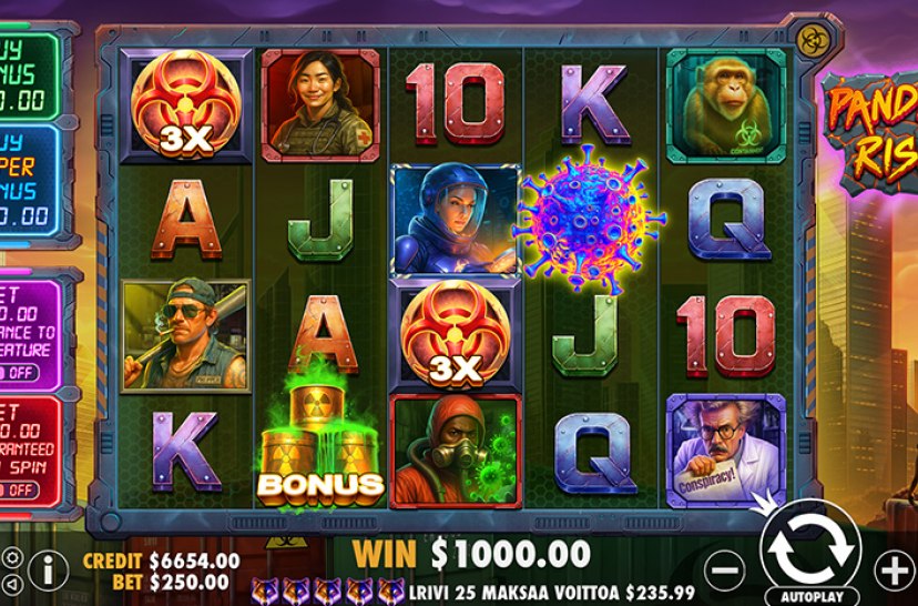 Face the outbreak in Pandemic Rising, a thrilling Pragmatic Play online slot filled with contagious excitement. Wild multipliers of up to 10x can strike during the base game, while Free Spins introduce Virus symbols with multipliers rising to 100x. With a max win of 14,000x, this high-volatility slot delivers electrifying spins and unstoppable energy.